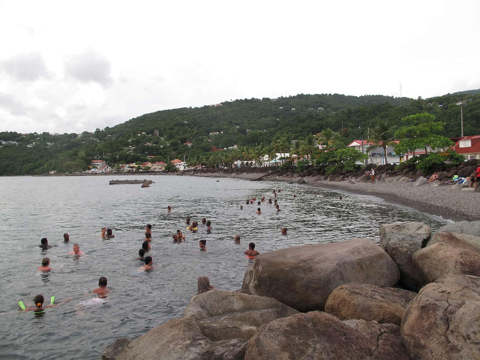 La source du bourg de Bouillante est issue du rejet des eaux sulfurées en mer extraite par la centrale géothermique. Elle offre un double thermalisme, source d’eau douce soufrée en plus d’eau de mer. Le bain est en plein bourg de Bouillante et beaucoup en profite aussi en soirée.